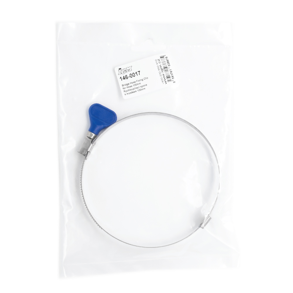 En enkel festeklips i stål med sommerfuglhåndtak i plast for rask og enkel bruk, og ideell for de fleste bruksområder med 100 mm slanger. Spesielt nyttig når det oppstår blokkeringer; de kan utbedres umiddelbart uten behov for skrutrekker eller klipsjern. Område 92 – 110 mm.