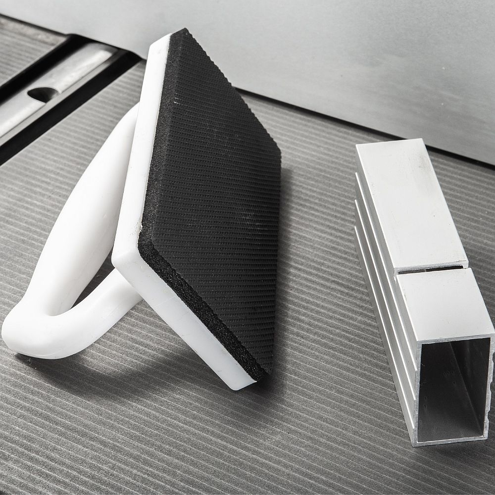 – Robust og langt tykkelsesbord. – Enkelt å bytte fra tykkelsesbord til nivellering. – Samtidig løfting av begge tykkelsesbordene. – Høydejusterbart innmatingsbord. – Høvleblokk med tre kniver. – Tykkelsesbredde på 256 mm – Kraftig motor på 1,7 kW – Aluminiumsanslag som kan vippes til 45°.