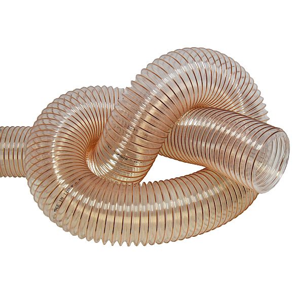 Høykvalitets PU (polyuretan) 102 mm gjennomsiktig fleksibel sugeslange i lengder på 2,5 m, 5 m eller 10 m. Den er forsterket med kobberbelagt stålspiral og er ideell for oppsuging av spon og sagflis med ett mobilt utsug fra forskjellige maskiner i verkstedet ditt. Kan brukes til et utløp med en diameter på ca. 100 mm. Leveres i komprimert tilstand. Slangelengden tilsvarer maksimal forlengelse.