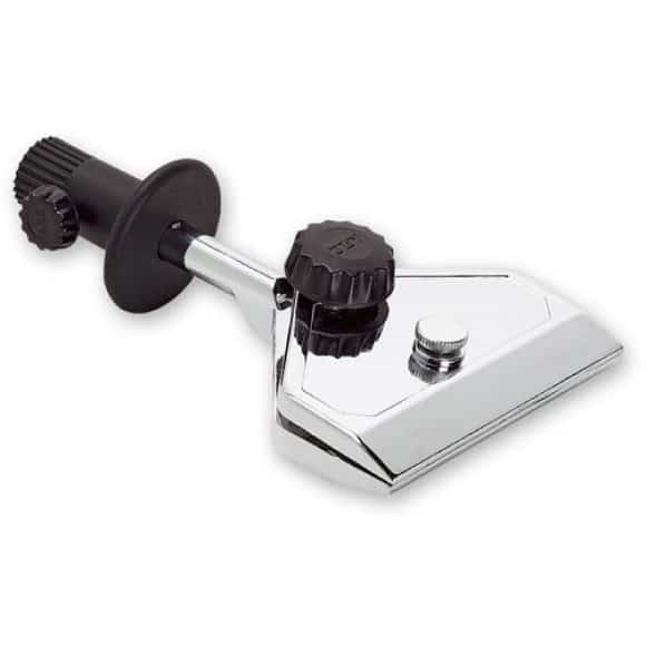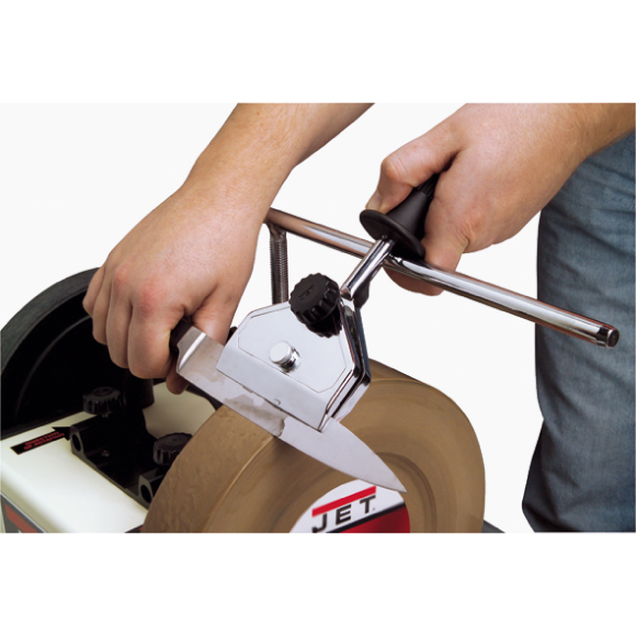 En bred klemmeflate gir godt feste for lange og avrundede kniver. Et roterende håndtak gjør det mulig å finjustere eggvinkelen. Etter å ha slipt den ene siden av eggen, kan du rotere og slipe den motsatte eggen i samme vinkel.