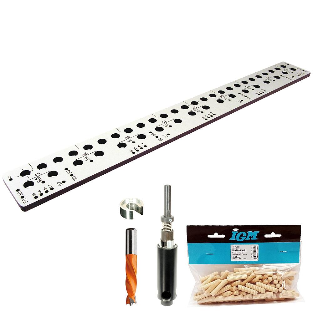IGM FKP900 Boremalssett 900 mm, Euro 32 mm + GRATIS 100 stk. plugger