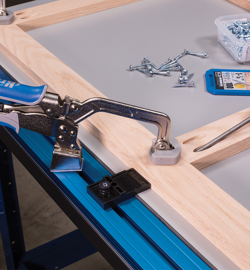 Slutt å jobbe rundt klemmene dine, og begynn å jobbe med dem. Med Clamp Trak kan du plassere Kreg Bench Clamps og Clamp Blocks hvor som helst langs bordkanten og raskt fjerne dem for å få tilbake en jevn arbeidsflate.