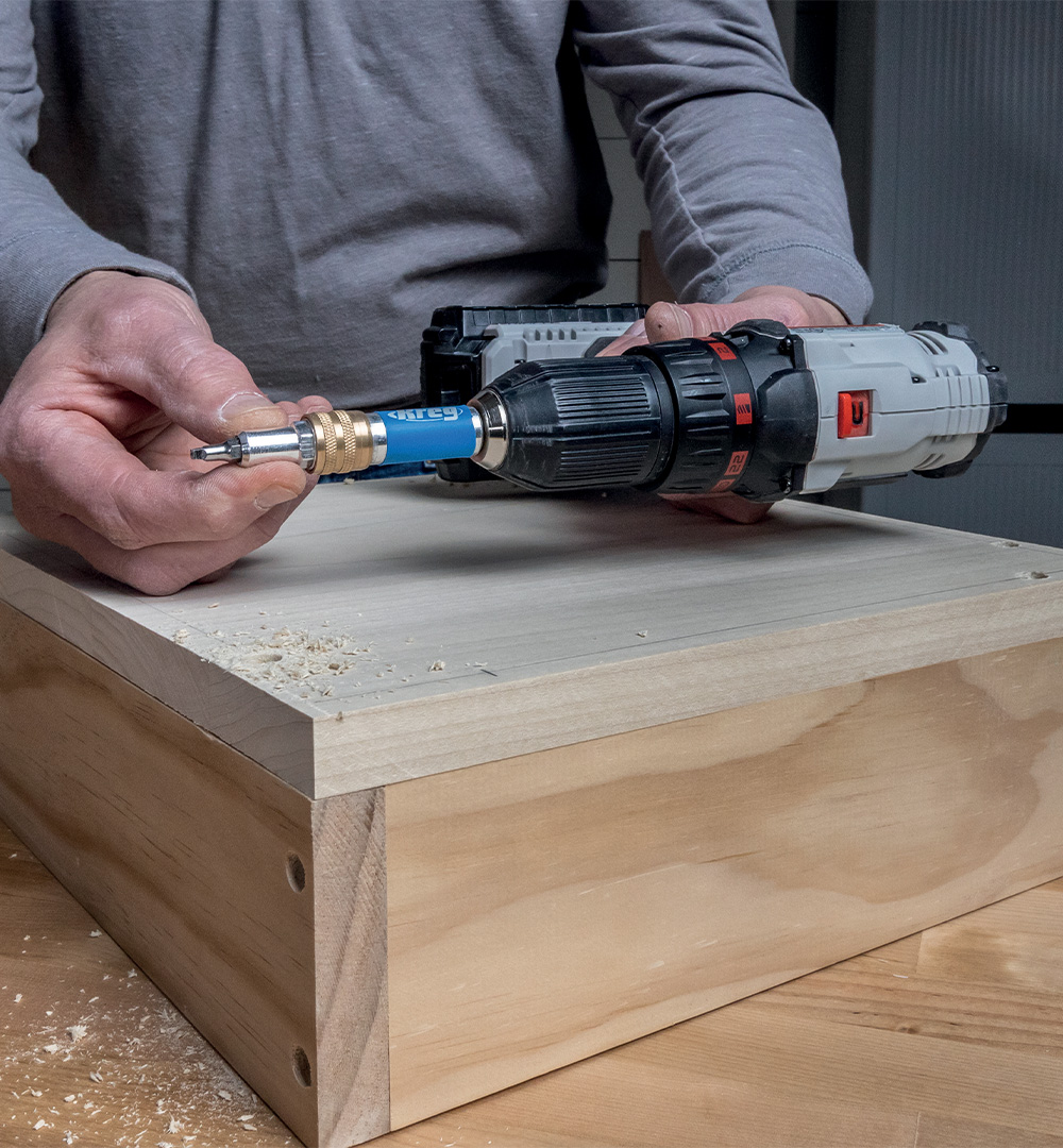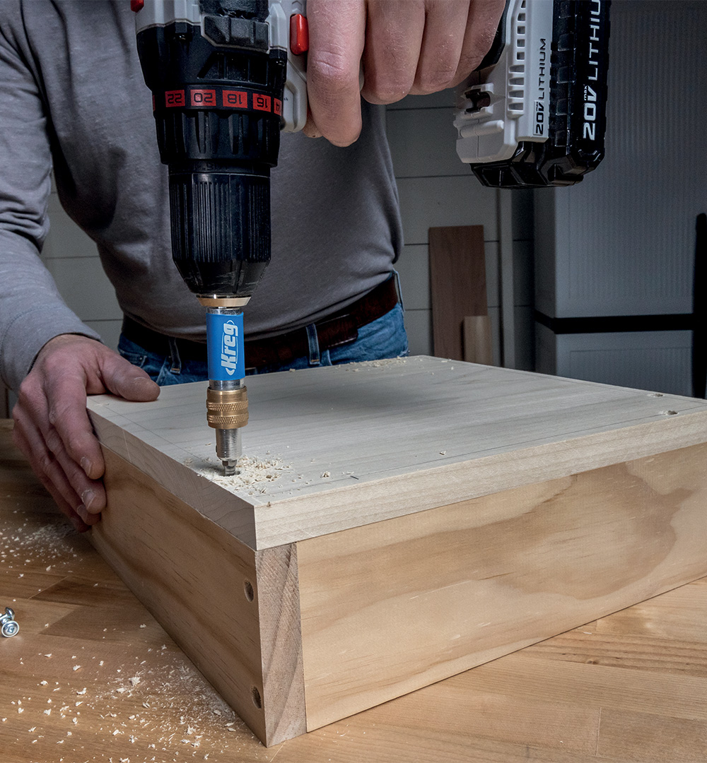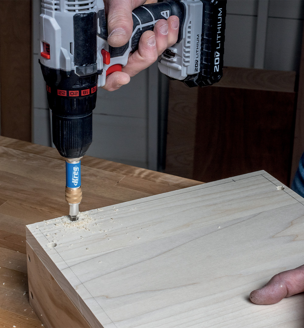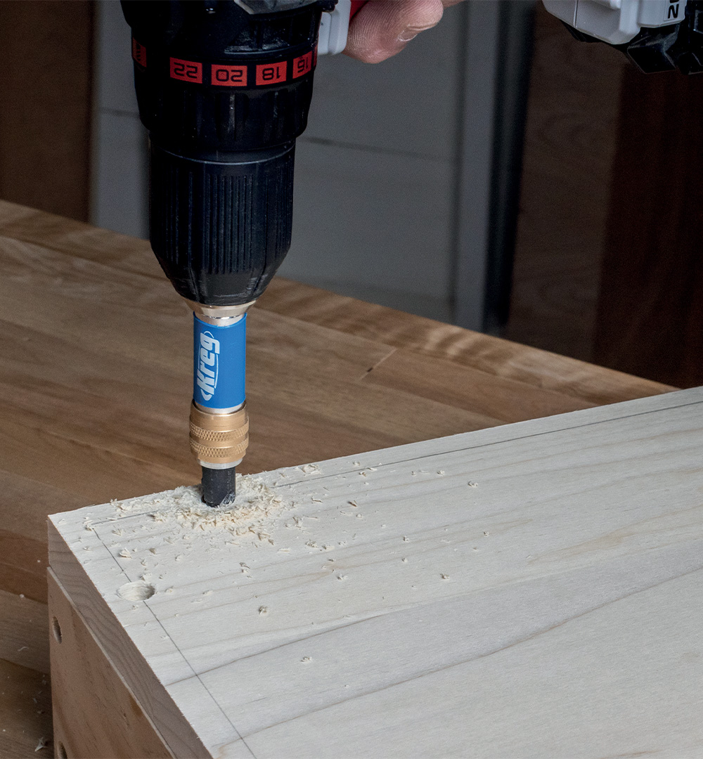 Kreg-skruer er perfekte til sammenføyninger med lommehull, men styrken og den høye tekniske kvaliteten gjør dem også ideelle til andre bruksområder. Bruk Quick-Flip med Kreg-skruer til å sette sammen hjørner, feste falske fronter på skuffer og mye mer.