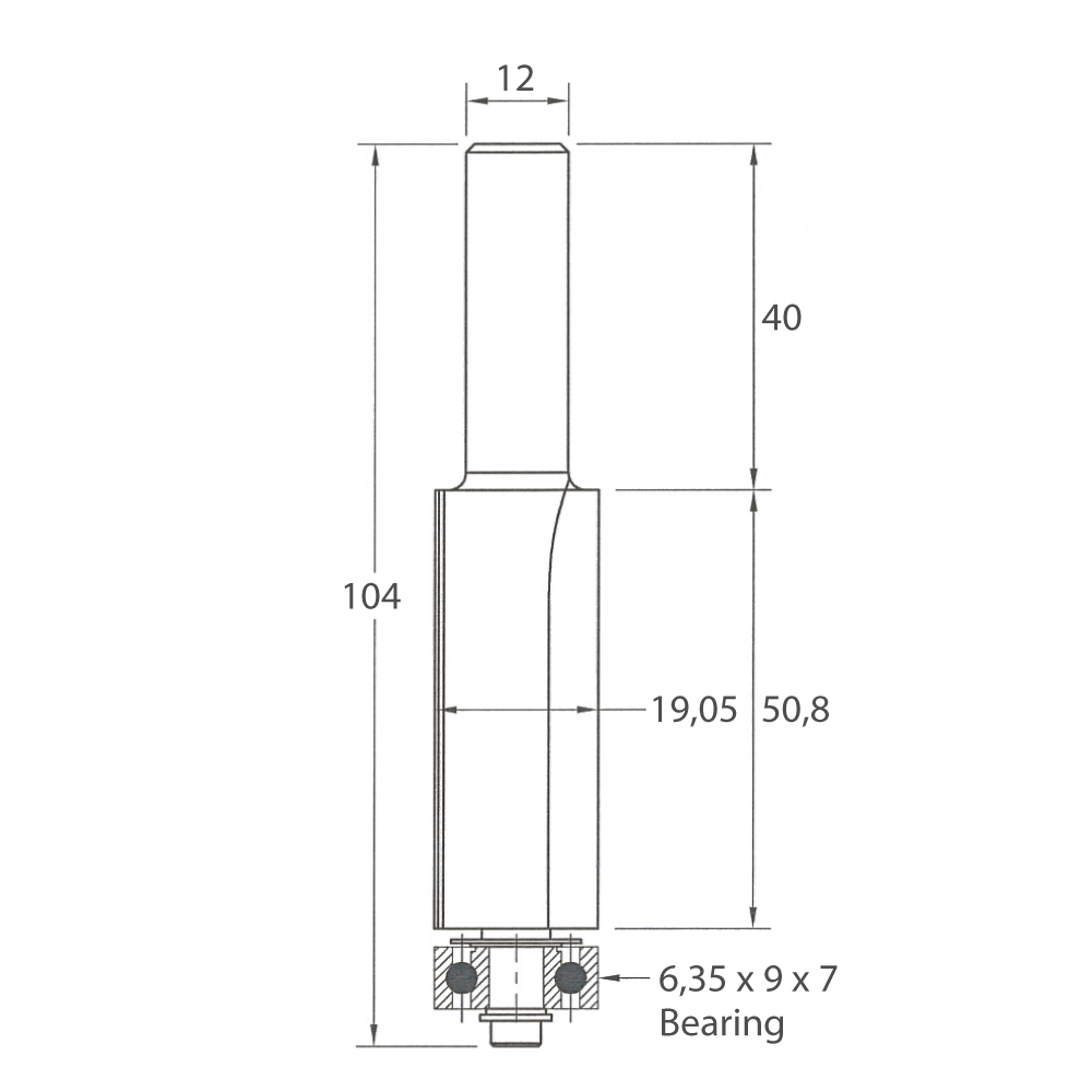 IGM M106 Flush Trim fresebit – D19,05×50,8 L104 S=12 HW