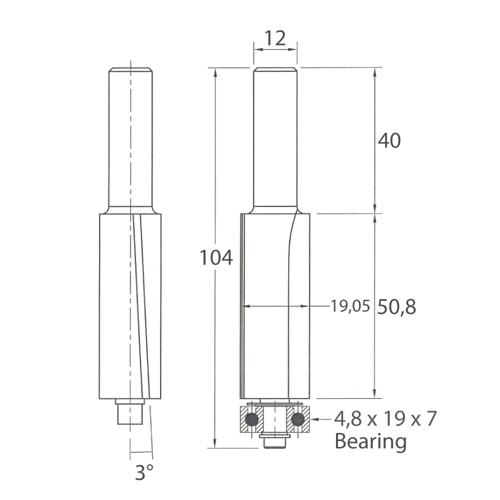 IGM M107 Flush Trim fresebit med nedskjær – D19,05×50,8 L104 S=12 HW